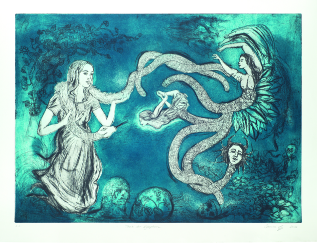 Zweifarbige Radierung auf Bütten. 78,5 x 106,5 cm.