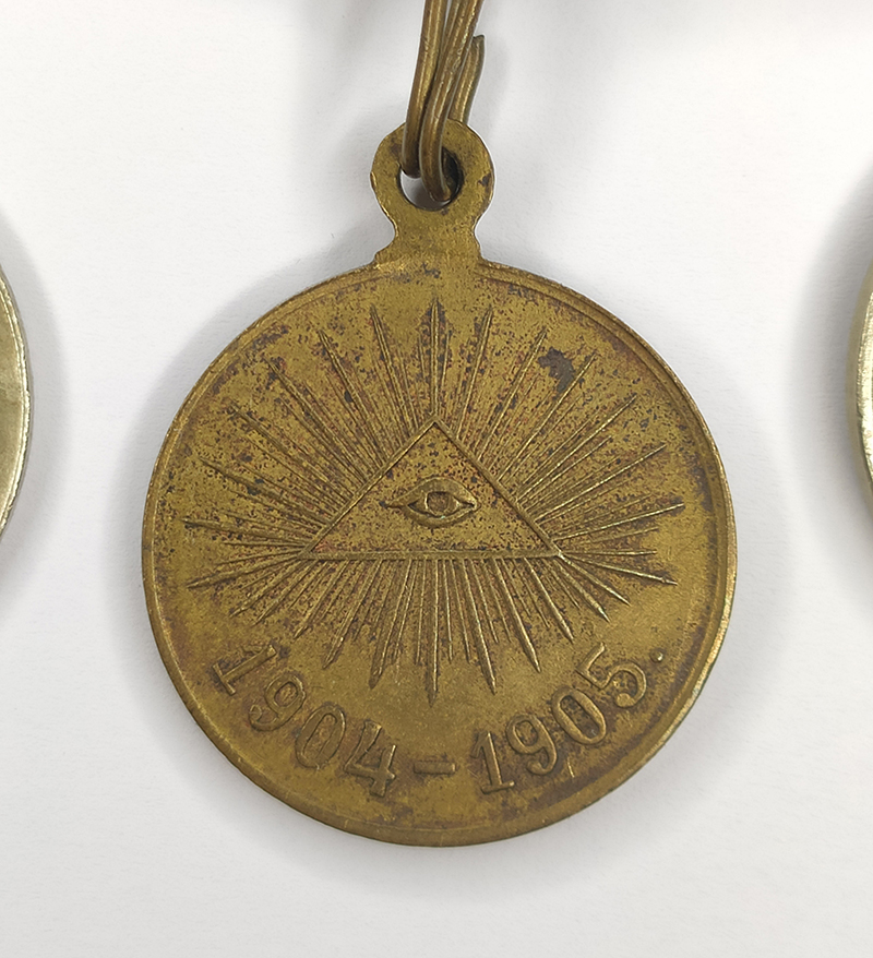2. Медаль в память Русско-японской войны 1904–1905 гг. Российская Империя. Неизвестная мастерская. Светлая бронза. Диаметр 27,5 мм. Сохранность хорошая. Биткин -1150, частная работа, образец г. Аналоги см. Смирнов - 1343. Петерс - 204.а. Петерс Н II - 26.а.;