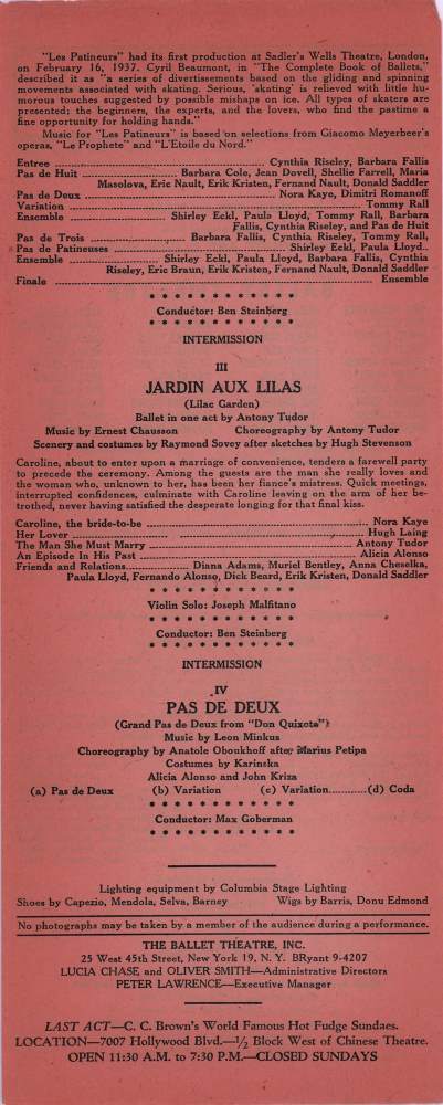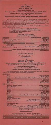 € 100В обложке из текстурированной бумаги. На внутренней стороне обложки напечатаны ч/б фотографии. На обложке офсетная литография Бермана. В блоке двойная ил. Смита и ил. Битона, а также большое количество черно-белых фотографий артистов. В блок вложены: две программы вуступлений, две газетные вырезки, одна вырезка из журнала и один рекламный лист. Экземпляр без утрат. Незначительные потертости корешка, один вертикальный загиб по правому краю. Два разворота отделены от блока. Общее состояние очень хорошее.